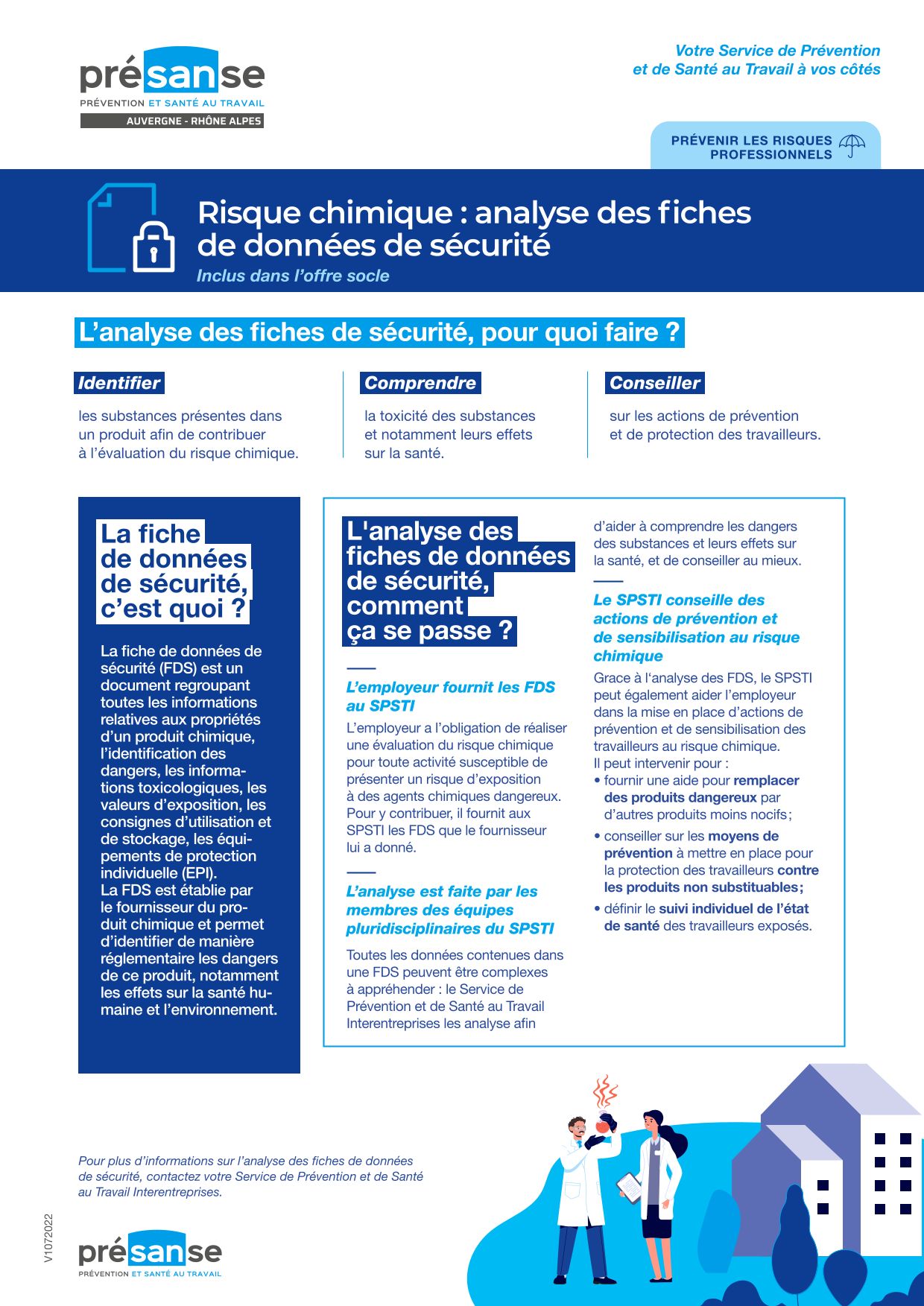 Campagne de communication Bombes, colorants, détergents… un cocktail explosif ? Voici les ressources mises à disposition pour répondre à cette thématique : Risque chimique : analyse des Fiches de Données Sécurité (219.7 Ko) Suivi post-exposition : la visite de fin de carrière (288.9 Ko)