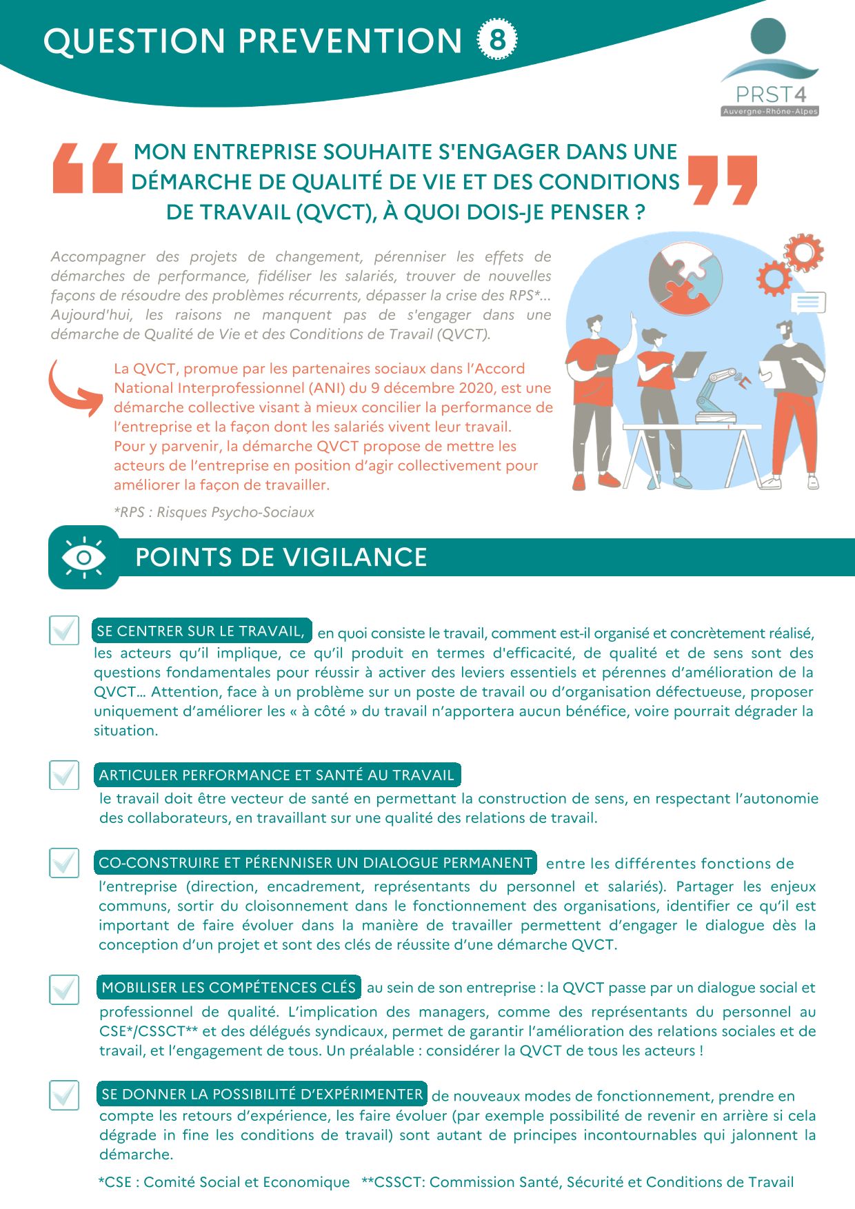 Campagne de communication Charge de travail, fatigue, stress… Comment j'aide mon équipe ? Dernière modification : 9 septembre 2024 Retrouvez les ressources mises à disposition pour répondre à cette thématique : Accompagnement dans la prévention des RPS (193.2 Ko) Mon entreprise souhaite s'engager dans une démarche QVCT, à quoi dois-je penser ? (740.5 Ko)
