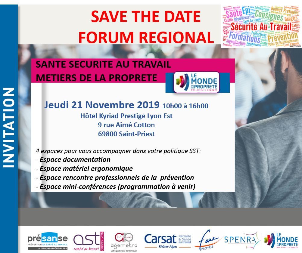 Presanse Auvergne-Rhône Alpes vous invite au Forum Santé Sécurité au travail adressé aux métiers de la propreté le 21 novembre prochain. Au programme : documentation, présentation du matériel ergonomique, rencontres des professionnels de la prévention et mini-conférences.