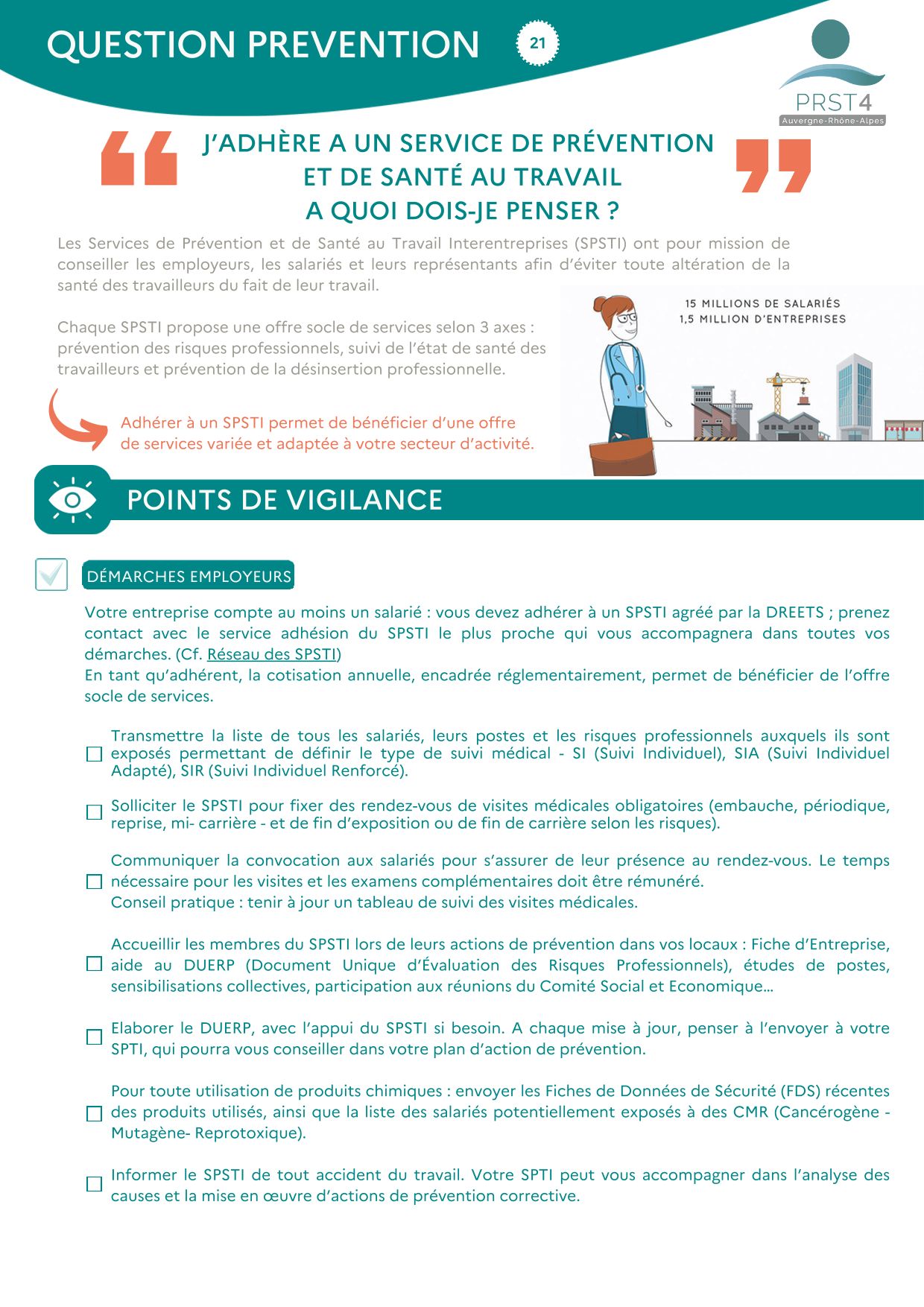 L'offre socle de services comprise dans la cotisation annuelle aux SPSTI Retrouvez les ressources mises à disposition pour comprendre. Voici les ressources mises à disposition pour répondre à cette thématique : Comment les Services de Prévention et de Santé au Travail Interentreprises (SPSTI) vous accompagnent au quotidien ? (1.4 Mo) L'ensemble des fiches de l'offre socle dans une brochure (3.0 Mo) Question-Prévention : J'adhère à un SPSTI, à quoi dois-je penser ? (568.6 Ko) Retrouvez les coordonnées de votre Service de Prévention et de Santé au Travail sur notre page dédiée : Le réseau