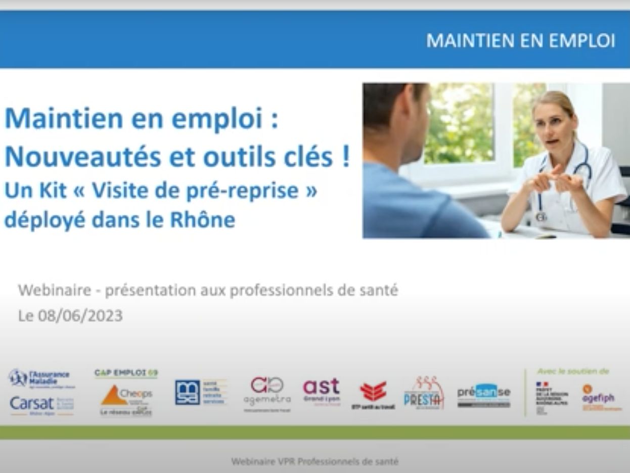 Visionnez le webinaire du 08/06/23 à destination des professionnels de santé organisé par les professionnels du maintien en emploi du Rhône
