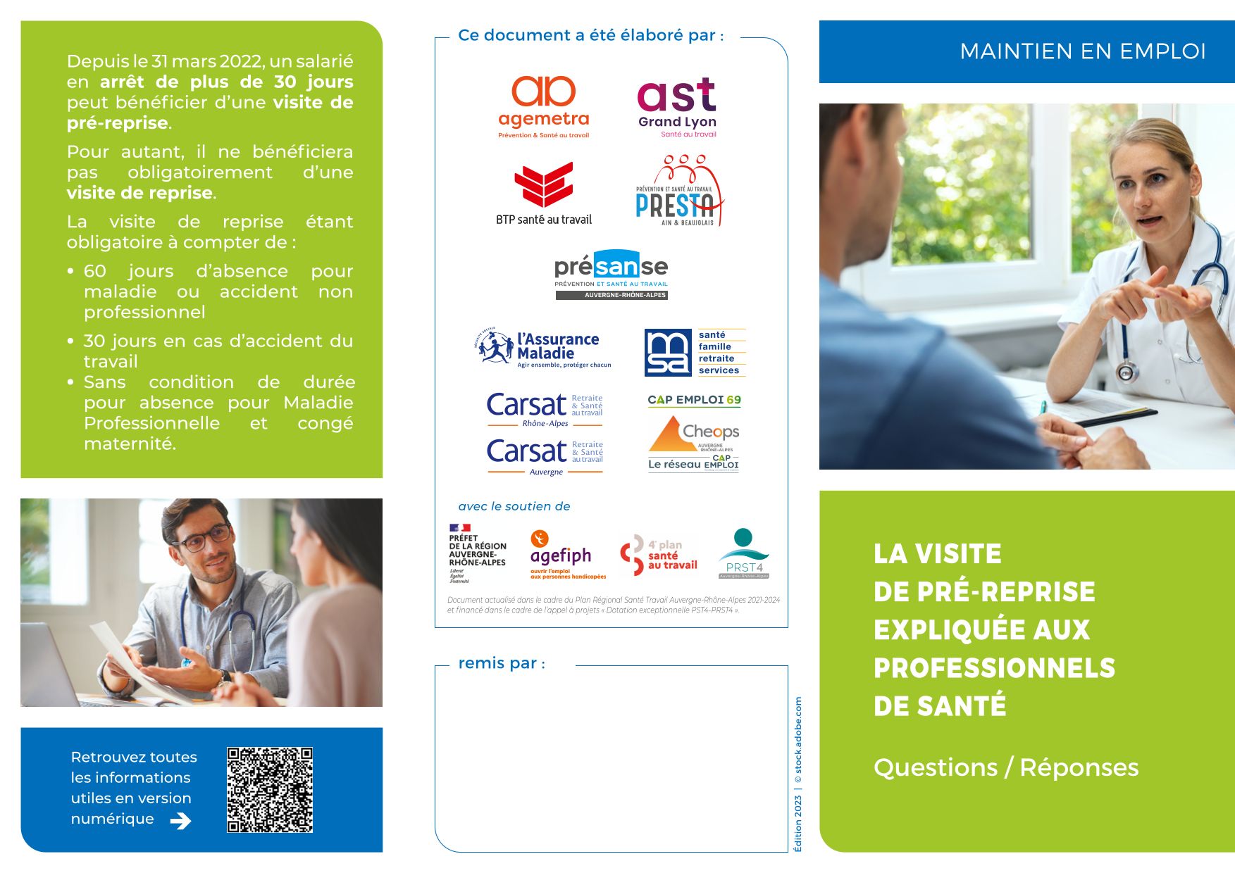 Cette action, co-construite par plusieurs acteurs de la santé au travail et du maintien en emploi du Rhône, a reçu le soutien financier de l’Etat et de l’Agefiph et a récemment été relayée aux 11 000 médecins inscrits au Tableau de l’Ordre des Médecins du Rhône.
