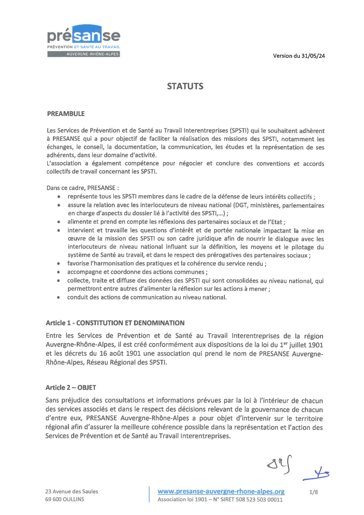 L’Association PRESANSE Auvergne-Rhône-Alpes est administrée par un Conseil d’Administration composé des Présidents en exercice des Services adhérents à l’Association ou/et les Directeurs des Services, dûment mandatés.